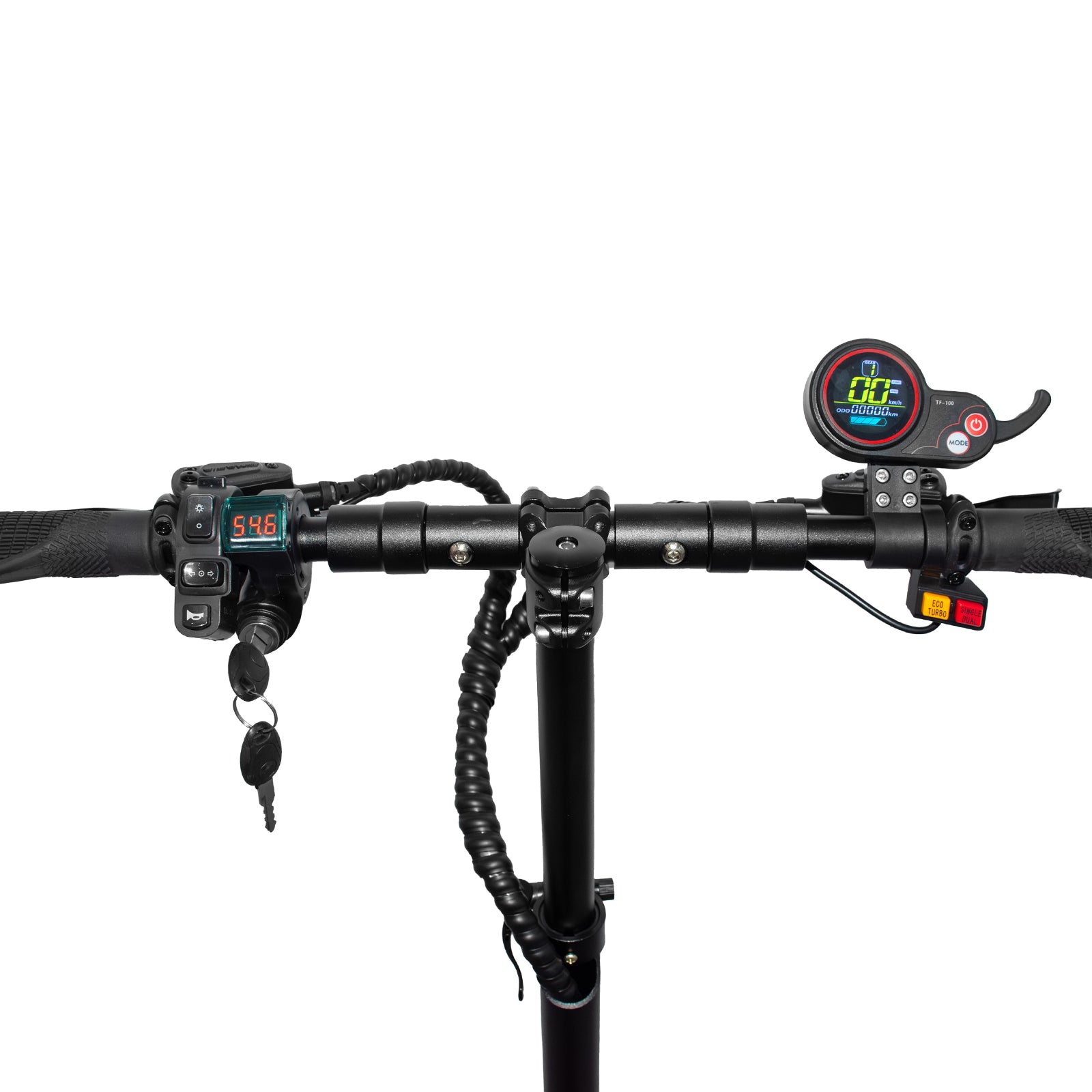 Front hydraulic forks combined with high-strength rear springs absorb shocks for a stable ride. - Modular Controller: Plug-and-Play Socket Design